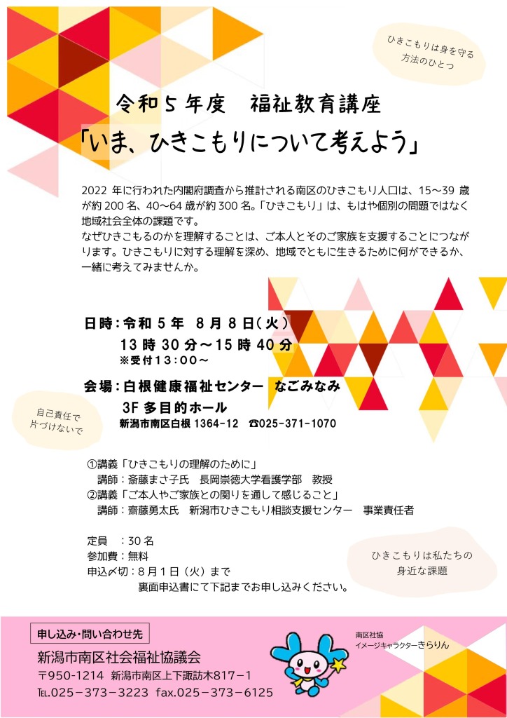 お申し込み先:南区社会福祉協議会 025-373-3223