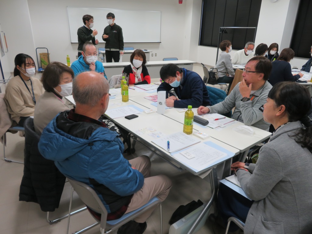 その後、報告と講演を聞いた感想や今後の地域と事業所のコラボについてのアイディアを話し合うグループワークを行い、皆さん大変活発に意見交換されていました。