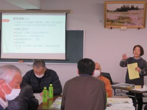 はじめに、地域福祉アクションプラン推進委員・民生委員の上杉小貴子さんより、「災害時避難行動要支援者名簿」についてと、昨年度行った「災害時避難に関するアンケート」の結果などから、避難行動要支援者として登録されていなくても地域では避難に不安を持っている人がいるということなどを確認しました。