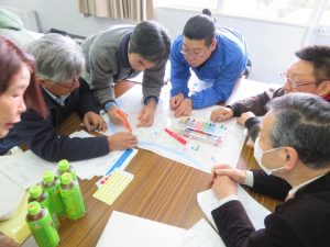 今回のテーマは、災害を想定して「人」「場所」「モノ」を確認しよう!という内容で、災害図上訓練を行いました