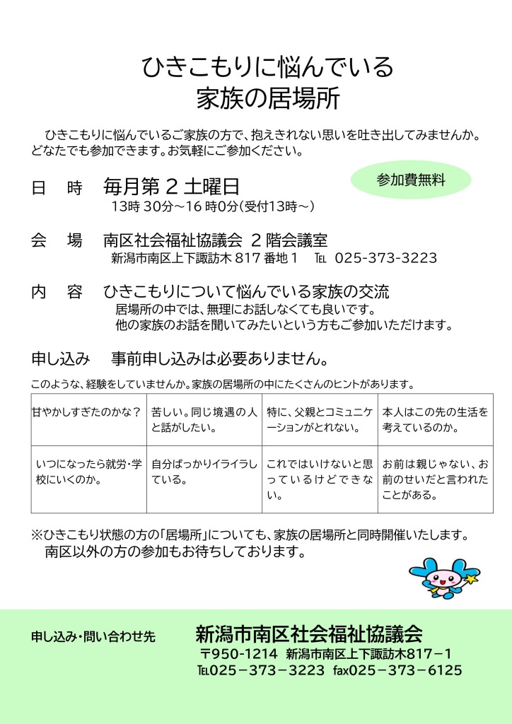 令和6年度「ひきこもりに悩んでいる家族の居場所」「rakkura(らっくら)」の開催について