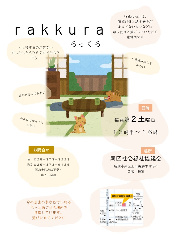 「ひきこもりに悩んでいる家族の居場所」「rakkura(らっくら)」は