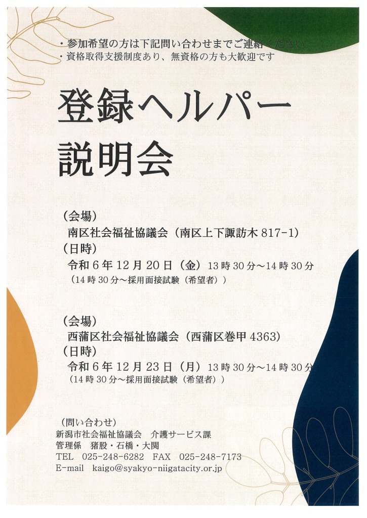 ※詳しくは、チラシをご覧ください→登録ヘルパー説明会チラシ 両面