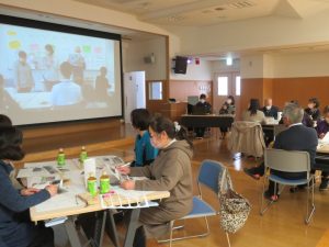 福祉事業所は事業所の中だけで完結せずに、地域の方々から得意なことで助けてもらったり、地域の方も、福祉事業所の中から役割を切り出してもらって高齢者などの活躍の場をつくる等、「まち」にほしい「資源」を一緒に創っていくことが、これからのカタチであるとのこと、参加者の皆さんもうなずきながら聞き入っておられました。