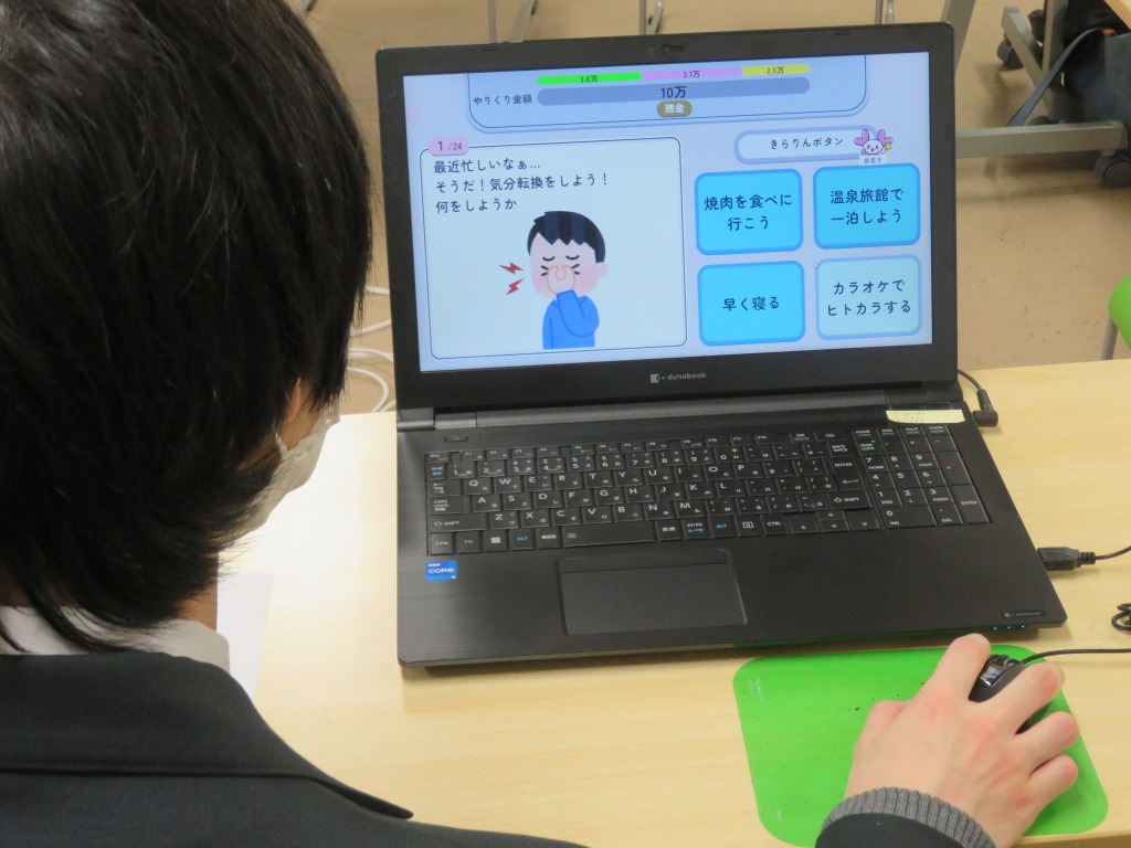 完成したゲームを使用して、どのような講座を開催すると学生の皆さんに生活のためのお金の使い方について考えてもらえるか検討しました。